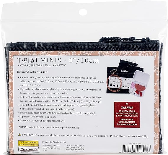 ChiaoGoo Twist Stainless Steel Interchangeable Set, 4-inch (10cm) Mini (7400-M)