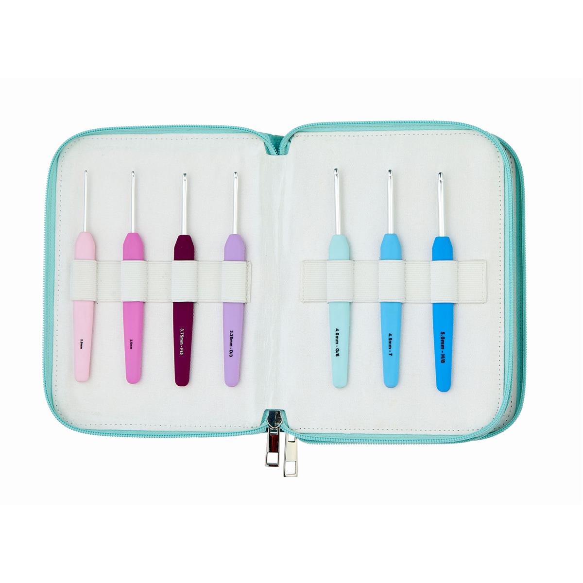 Similar to the Deluxe set but with larger hook sizes (great for bulky yarns and large projects). The “Grande” set includes oversized hooks with the same ergonomic wavy handles that enhance comfort and control, especially useful for crocheters who work with thicker yarns or have hand strain concerns.